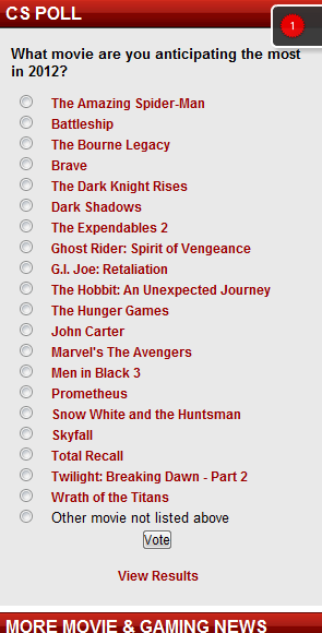 Um portal de filmes famosos, Fandango conduziu uma pesquisa para determinar quais são os filmes mais esperados para 2012. A única diferença é que ele decidiu pedir separadamente para homens e mulheres, para que possamos determinar as preferências de acordo com cada sexo.